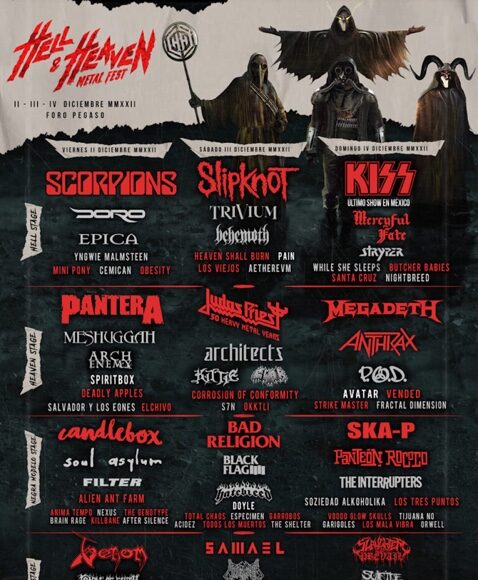 Artistas legendarios como Kiss (quienes le dan un farewell a México con su último show en el país), Scorpions, Pantera, Megadeth y Slipknot, así como bandas emergentes, entre ellas Tulkas y Todos los Muertos, compartirán escenario en el Foro Pegaso de Toluca a lo largo de tres días.